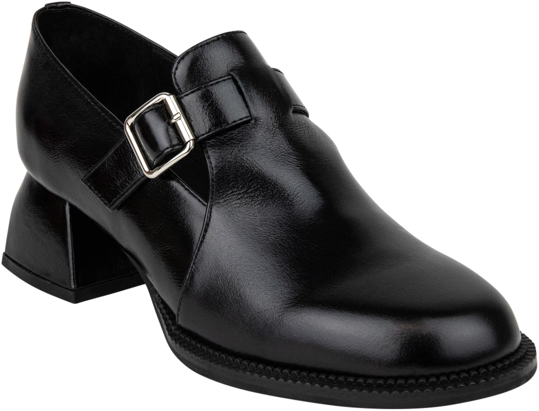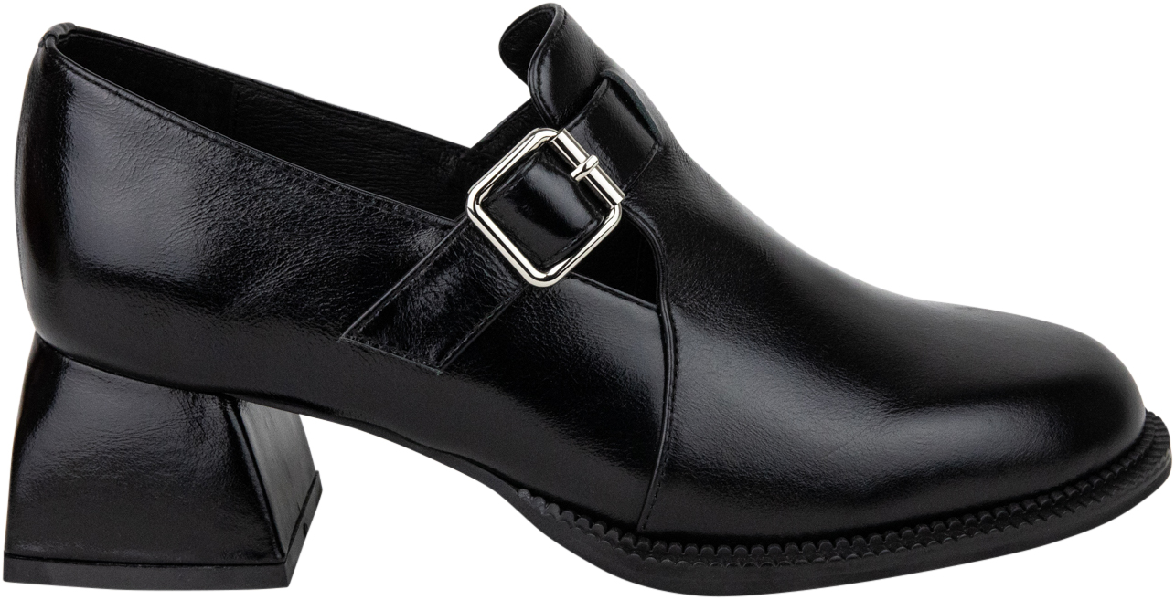 The asymmetrical cut-out design adds visual interest while ensuring breathability and comfort. A wide strap with a silver-toned square buckle not only secures the fit but also lends a striking, fashion-forward edge. The low, geometric block heel—with its subtly flared base—offers stability and a touch of architectural flair, perfect for long days on your feet.