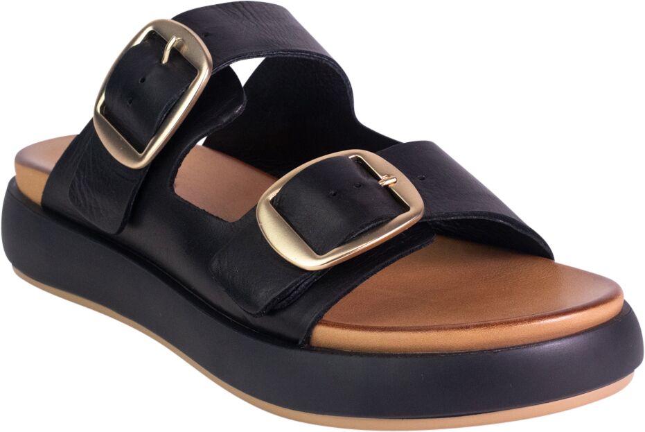 Step into elevated everyday comfort with this modern double-strap slide sandal, crafted to deliver effortless style and exceptional wearability. Made from premium leather, the upper features two wide straps designed to gently hug the foot, each finished with oversized matte-buckles that bring a bold yet refined touch. The adjustable buckles allow for a customized fit, ensuring the sandal feels secure and supportive throughout the day.