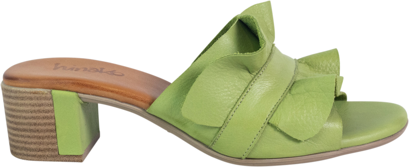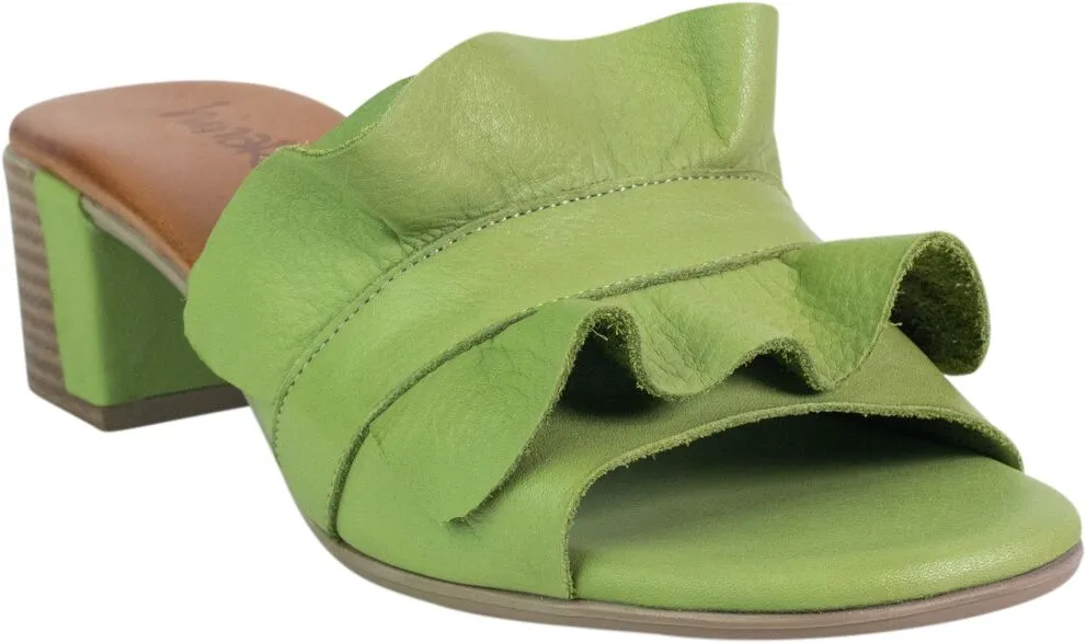 Step into timeless elegance with this Dixie colored heeled slide sandal, designed to effortlessly elevate your warm-weather wardrobe. Crafted from high-quality leather, this sandal features a gracefully layered ruffle across the vamp, adding a touch of feminine flair and visual texture. The open toe design provides breathable comfort, while the wide band ensures a secure and flattering fit.